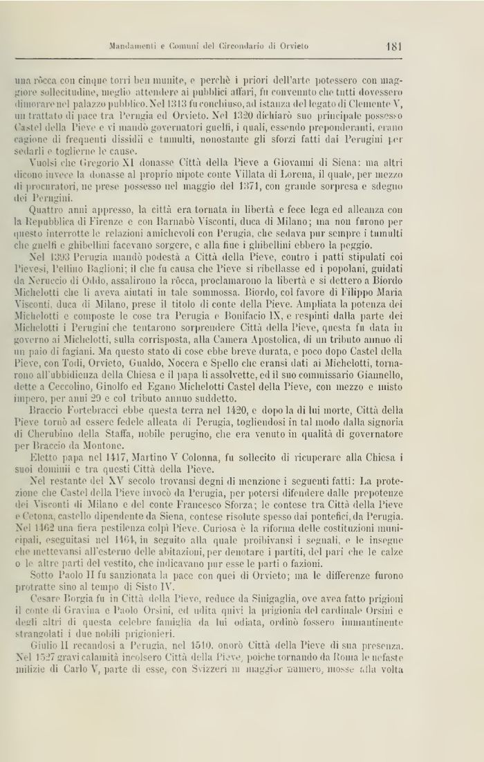 Giulio lì recandosi a Perugia nel 1510, onorò Città della Pieve distia presenza. Nel ,§2%ravi calamiti incolsero Città della Pieve, poiché tornando da Roma le nefaste milizie di Carlo V, parte di esse, con Svizzeri 111 maggior numero, mosse alla volta