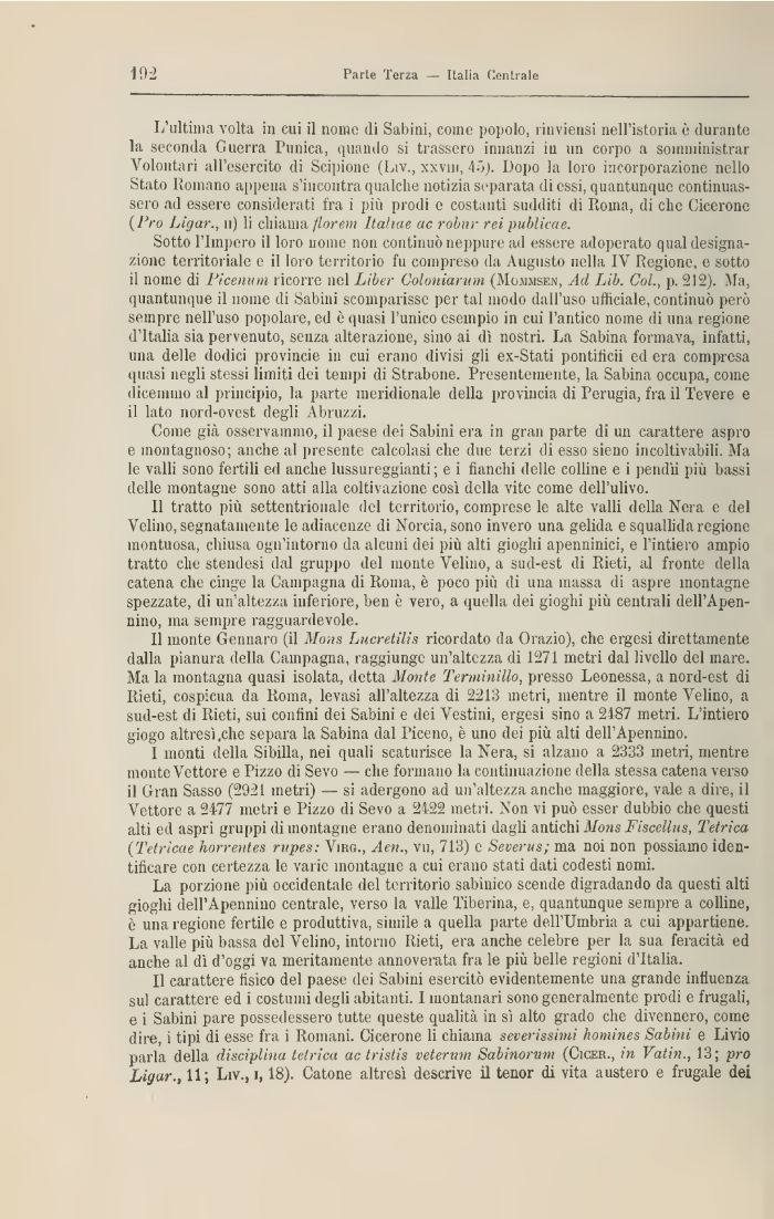 I monti della Sibilla, nei quali scaturisce la Nera, si alzano a 2333 inetri, mentre monte Vettore e Pizzo di Sevo — che formano la continuazione della stessa catena verso il Gran Sasso (2921 metri) — si adergono ad un'altezza anche maggiore, vale a dire, il Vettore a 2477 metri e Pizzo di Sevo a 2422 metri. Non vi può esser dubbio che questi alti ed aspri gruppi di montagne erano denominati dagli antichi Mons Fiscellus, Tetrica (Tetrìcae horrentes rupes: Virg., Aeri., vu, 713) e Severus; ma noi non possiamo identificare con certezza le varie montagne a cui erano stati dati codesti nomi.