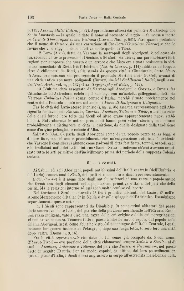 Ai Sabini ed agli Aborigeni, popoli antichissimi dell'Italia centrale (dell'Umbria e del Lazio), connettonsi i Siculi, dei quali ci rimane ora a discorrere succintamente.