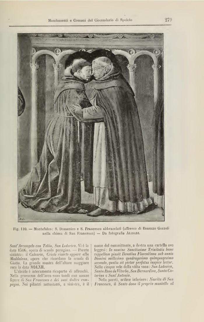 Fig. 110. — Montefalco: S. Domenico e S. Francesco abbracciati (affresco di Llenozzo Gozzoli nella chiesa di San Francesco) — Da fotografia Allnaiu.