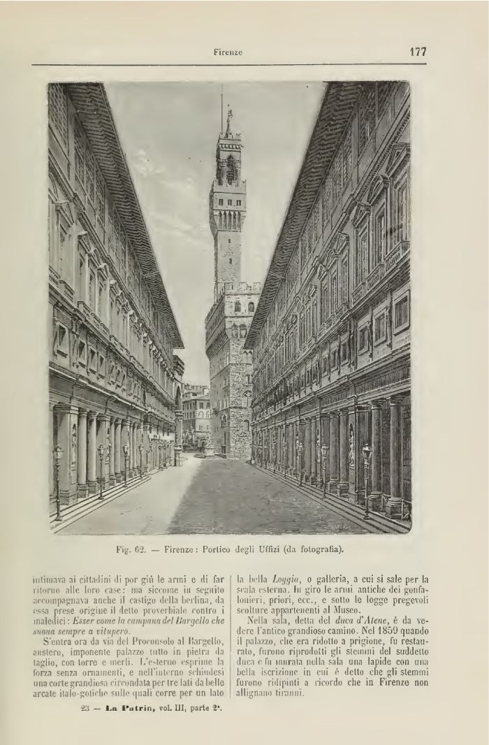 Fig. 62. — Firenze : Purlico degli Uffizi (da fotografìa),