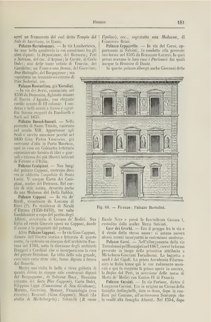 Palazzo Ceppari'llo. — In via del Corso, appartenuto ai Salviati, fu condotto alla presente sua forma nel 1505 da Bramante Lazzeri. In quei pressi avevano le loro case i Portinol i dai quali nacque la Beatrice di Dante.