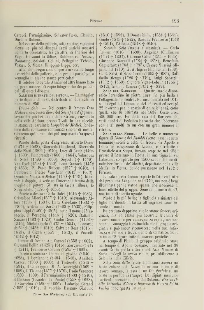 Parete a destra: Carlo Dolci (1010 f 1080), Cristoforo Allori (1577 f 1010), Alessandro Allori (1535 f 1007), Luca Giordano (1032 f 1705), Andrea del Sarto (1488 f 1530), Filippino Lippi (1400 f 1505), sotto il nome di Mas-saccio, il Perugino (1440 -j- 1526), Raffaello Sanzio (1483 j- 1520), Giulio Romano (1492 + 1540), Michelangelo (1475 -j- 1554), Leonardo da Vinci (1452 f 1519), Salvator Rosa (1015 f 1073), il Cigoli (1559 f 1013), il Poccctti (1542 f 1012).