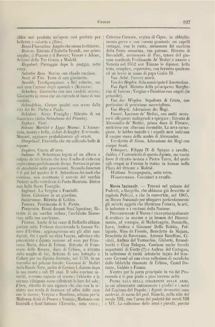 Museo Nazionale. — Trovasi nel palazzo del Podestà, 0 Bargello, che abbiamo già descritto al capitolo Palazzi, e che fu convertito, nel 1805, in Museo Nazionale per allogarvi particolarmente gli antichi oggetti che illustrano l'istoria, le arti, le industrie e i costumi della Nazione.