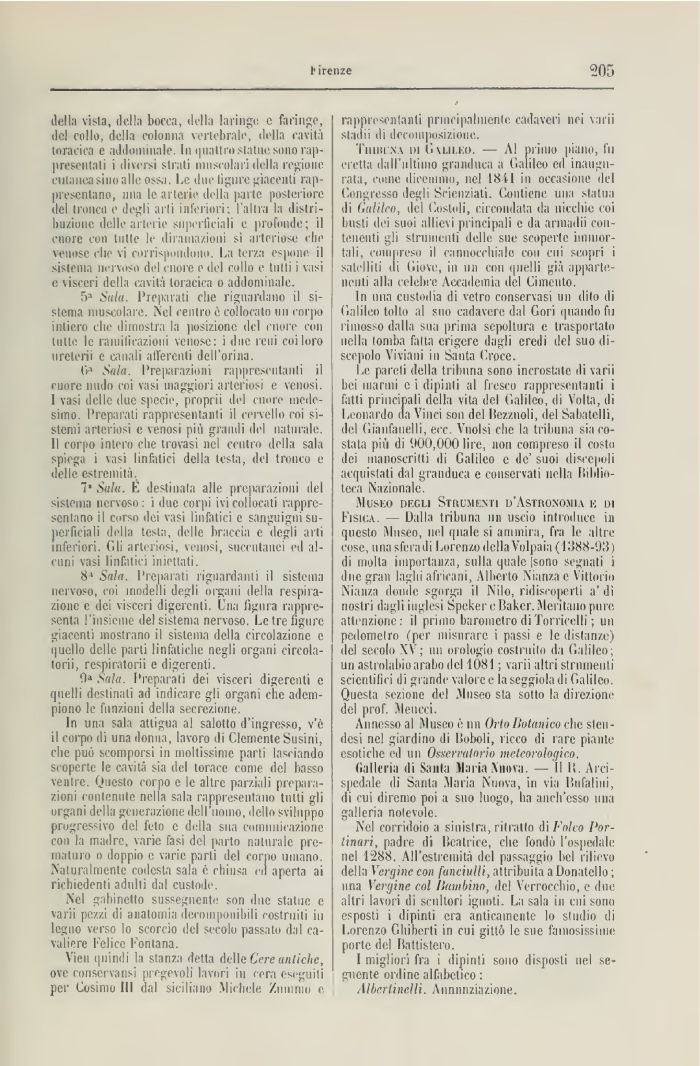 Tiimt'n v tu Gvuuìo. — Al primo piano, fu eretta dall ultimo granduca a Galileo ed inaugurata, coinè dicemmo, nel 1811 in occasione del Congresso degli Scienziati. Contiene una statua di Citlilco, del Costuli, circondata da nicchie coi busti dei suoi allievi principali e da armadii con tenenti gli strumenti delle sue scoperte, immortali, compreso il cannocchiale con cui scopri ì satelliti ili Giove, in un con quelli già appuriti-ueiifi alla celebre Accademia del Cimento.