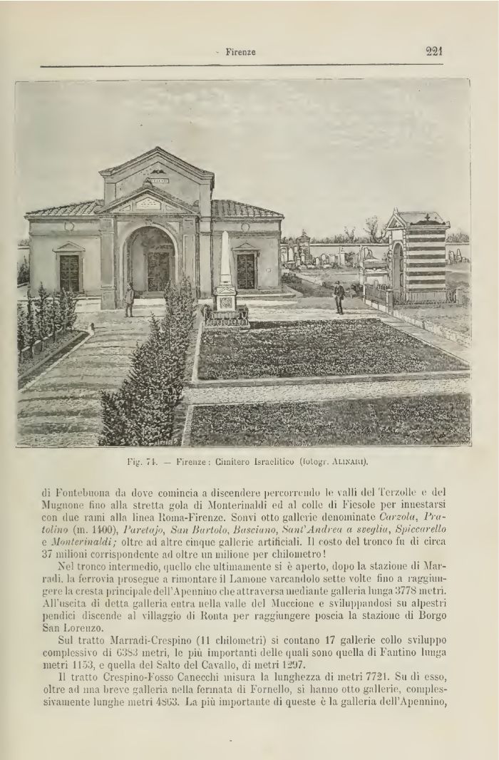 di Fontebuona da dove comincia a discendere percorrendo le valli del l'crzolle e del Mugnone tino alla stretta gola di Monterinaldi ed al colle di Fiesole per innestarsi con due rami alla linea lloma-Firenze. Sonvi otto gallerie denominate Corsola, I'ra-lolino (in. 1100), l'uretujo, San Bartolo, Basciuno, Sant'Andrea a sveglia, Spiccar elio e Monterinaldi ; oltre ad altre cinque gallerie artificiali. Il costo del tronco fu di circa 37 milioni corrispondente ad oltre un milione per chilometro !