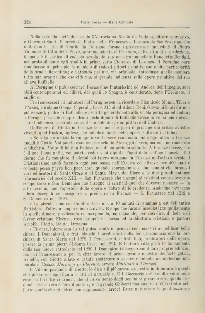 Dell'opera di Giotto in Firenze lasciamo che parli il principe dei critici artistici viventi, quel Ruskin, inglese, che pubblicò tante belle opere sull'arte in Italia: