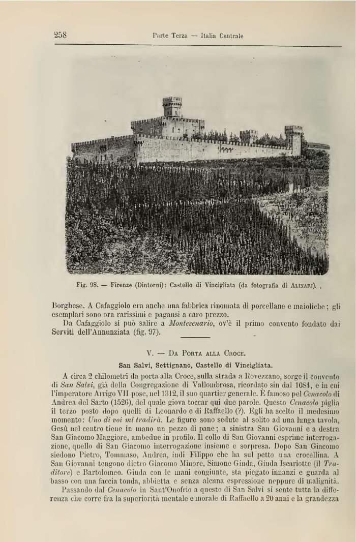 Fig. 98. — Firenze (Dintorni) : Castello di Yincigliata (da fotografia di Alinahi). ,