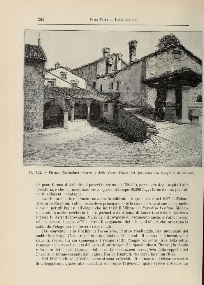 Fig. 102. — Firenze (Casentino) : Convento detta Verna. Piazza del Quadrante (da fotografia di Alinaiìi).