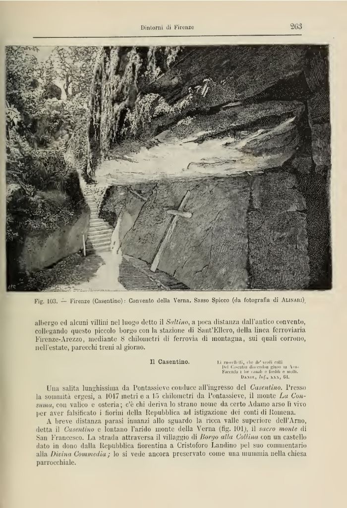 Fig. 103. — Firenze (Casentino): Convento della Verna. Sasso Spicco (da fotografia di Alinaiu)