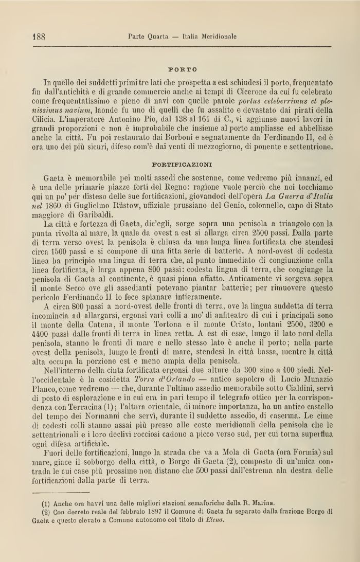(lj Anche ora havvi una delle migliori stazioni semaforiche della R, Marina. (2) Con decreto reale del febbraio 1897 il Comune di Gaeta fu separato dalla frazione Borgo di Gaeta e questo elevato a Comune autonomo col titolo di L'Iena.