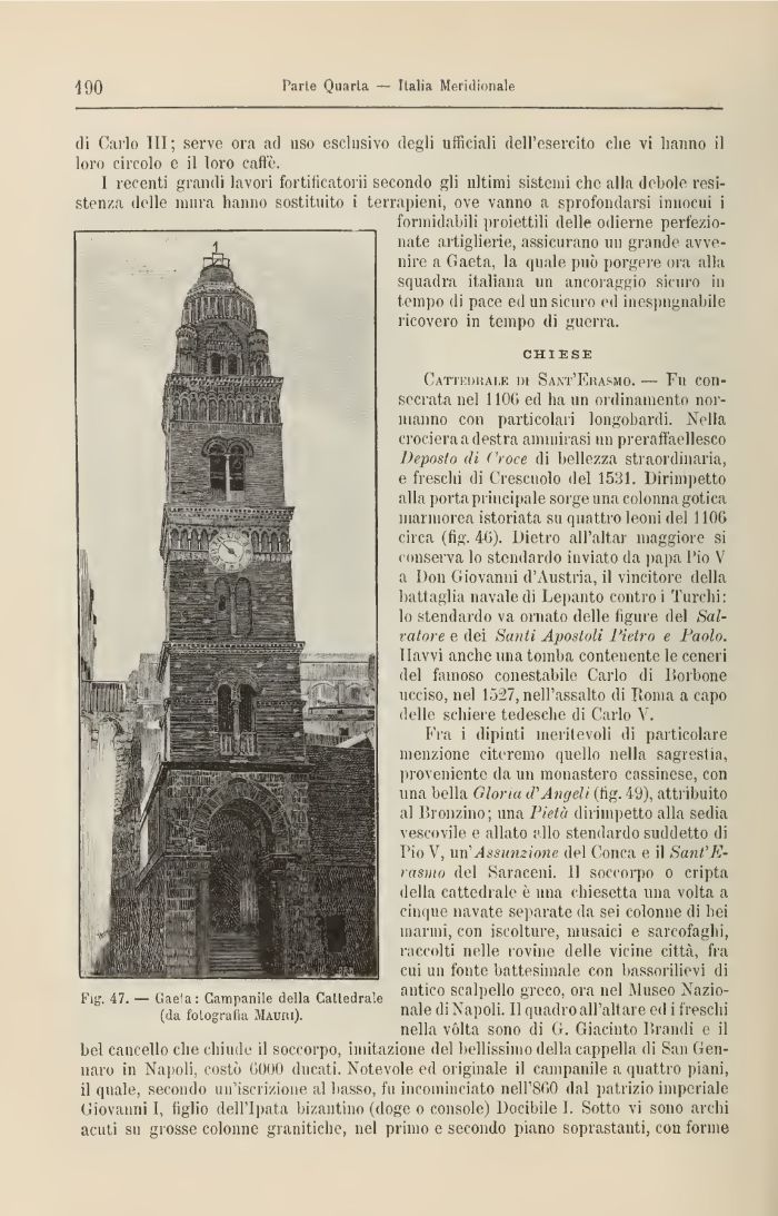 Fig. 47. - tiaela: Campanile della Cattedrale litico scalpello greco, ora nel Museo Nazio-(da fotografìa MAuni). naie di Napoli. Il quadro all attare ed 1 freschi