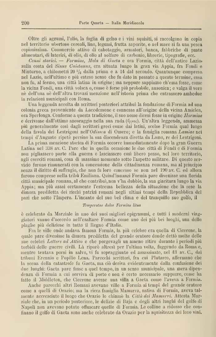 è celebrato da Marziale in uno dei suoi migliori epigrammi, e tutti i moderni viaggiatori vanno d'accordo nell'esaltare Formia come uno dei più bei luoghi, una delle plaghe più deliziose in tutto il Regno d'Italia.