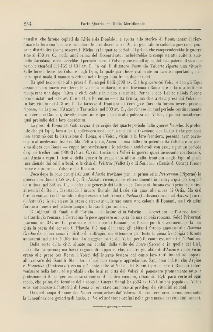 Da quel tempo il nome dei Volsci scomparisce dall'istoria. 11 loro territorio fu compreso sotto la denominazione generica di Lazio, e i Volsci andarono confusi nella gran massa dei cittadini romani.