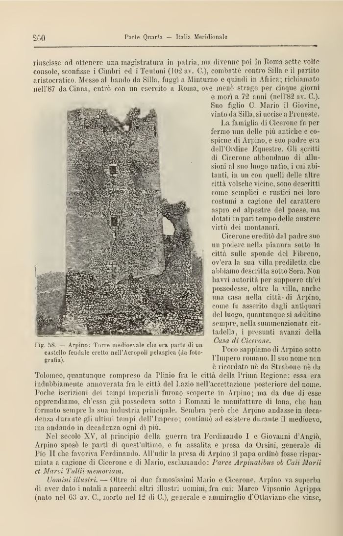 • '. ov'era la sua villa prediletta che abbiamo descritta sotto Sora. Non liavvi autorità per supporre eh'ei possedesse, oltre la villa, anche una casa nella città di Arpino, come fu asserito dagli antiquari del luogo, quantunque si additino sempre, nella summenzionata cittadella, i presunti avanzi della