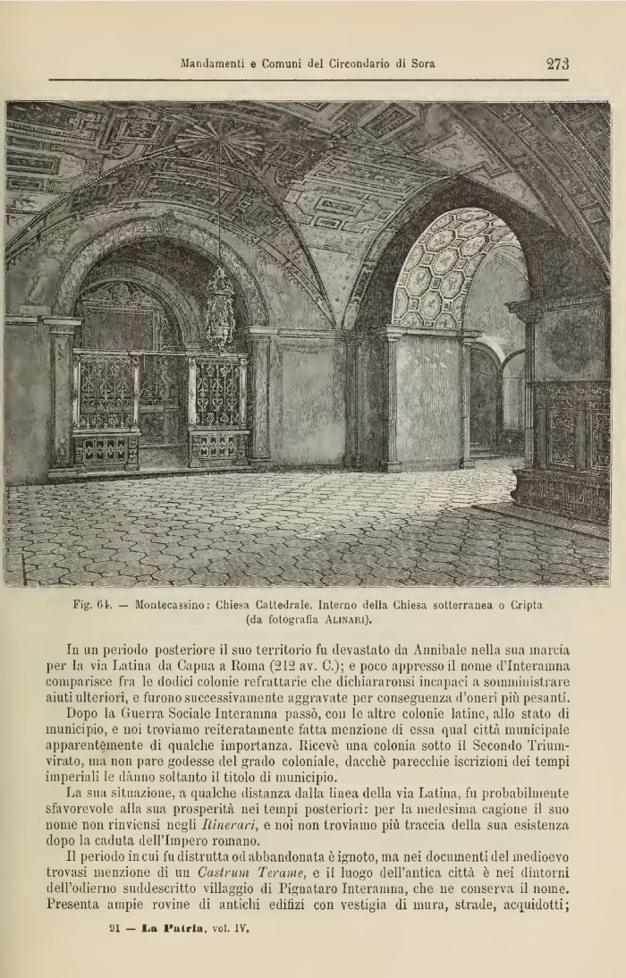 Fig. 6t. — Montecassino: Chiesa Cattedrale. Interno della Chiesa sotterranea o Cripta