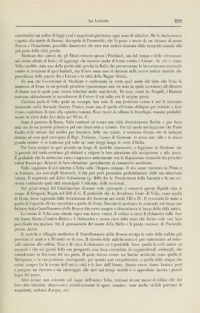 Sotto il governo ili lioma, Velia continuò ad essere una città discretamente tlorida e par fosse nota sin da un periodo primitivo pel suo clima mite e salubre. Per tal modo noi leggiamo che Paolo Emilio vi fu inviato dai medici per beneficio della sua salute, e troviamo Orazio clic fa indagini intorno ad essa qual surrogato di liaja. Treliazio, l'amico di Cicerone, vi aveva una villa e lo stesso grande oratore vi si trattenne più volte ne' suoi viaggi lungo le coste d'Italia.