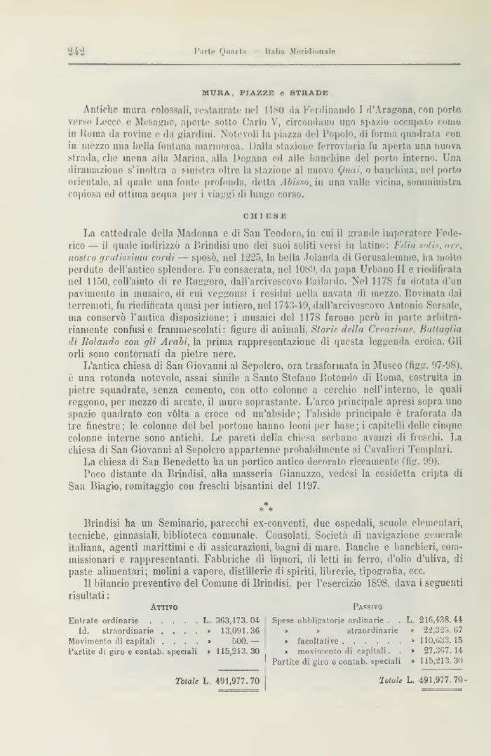 11 bilancio preventivo del Comune di Brindisi, per l'esercizio 1898, dava i seguenti risultati :