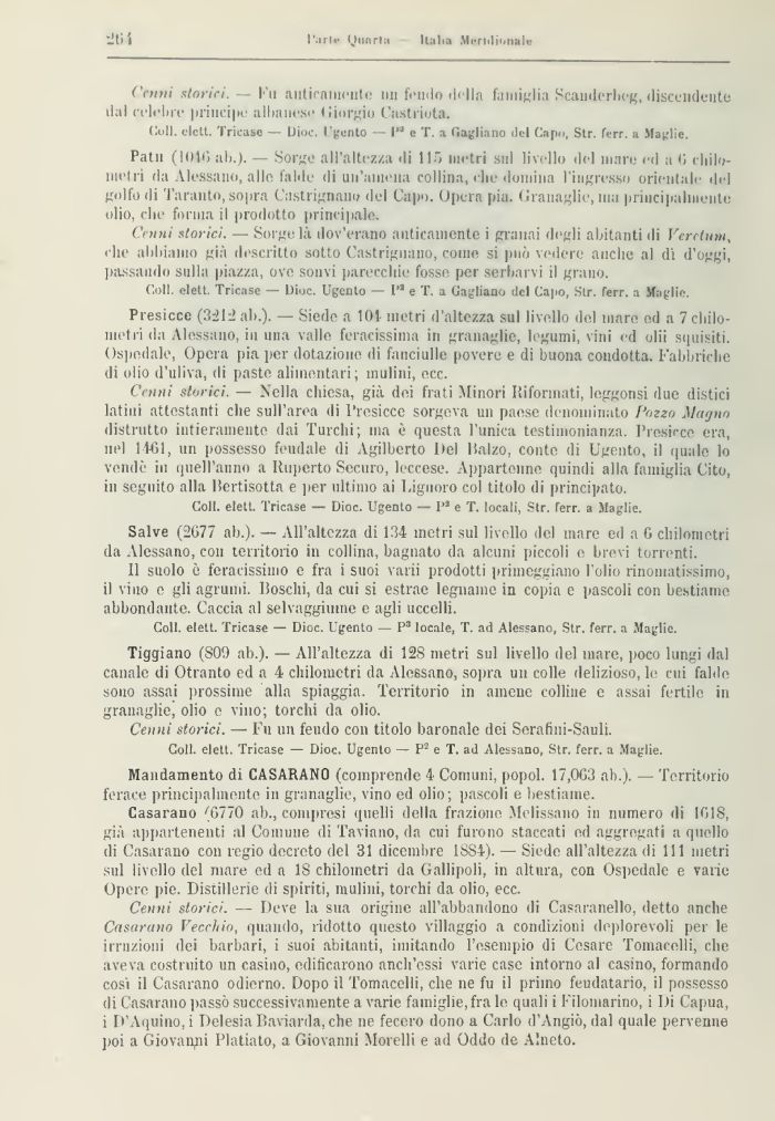 Coli, elctt. Tricase — Dioc. Ugento — P2 e T. ad Alessano, Str. ferr. a Maglie.