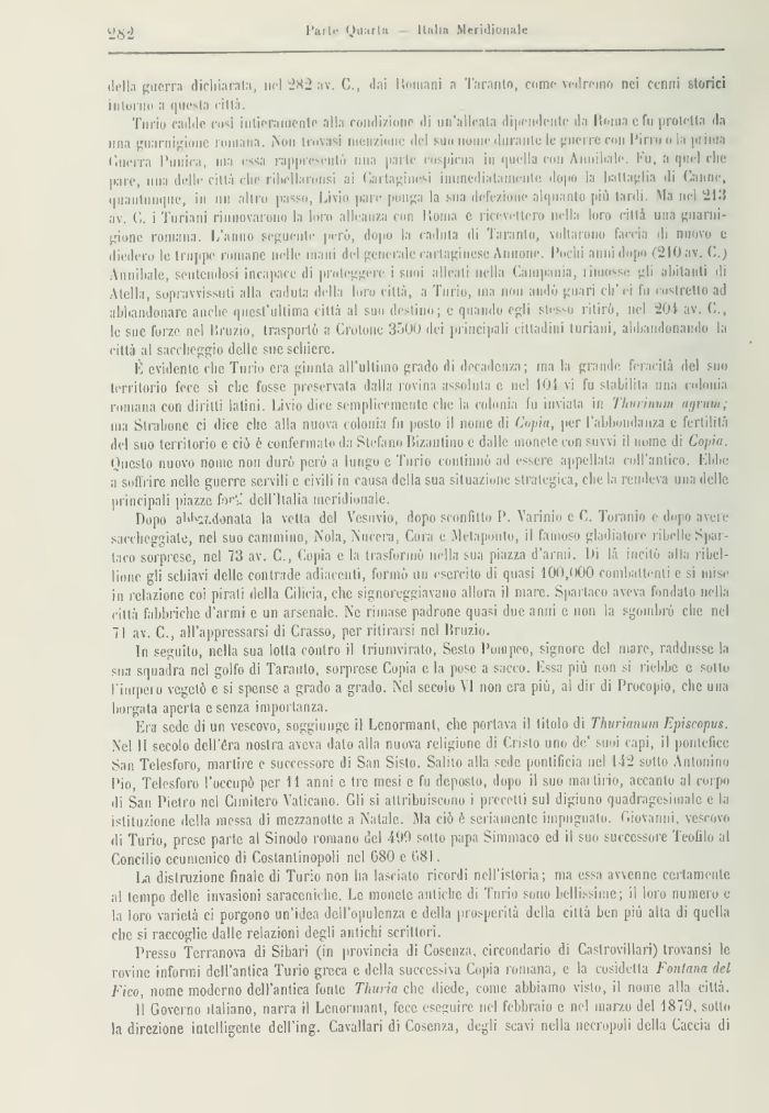 Presso Terranova di Sibari (in provincia di Cosenza, circondario di Castrovillari) Irovansi le rovine informi dell'antica Turio greca e della successila Copia romana, e la cos'ideila Fontana del Fico, nome moderno dell'antica fonte Thuria che diede, come abbiamo visto, il nome alla città.