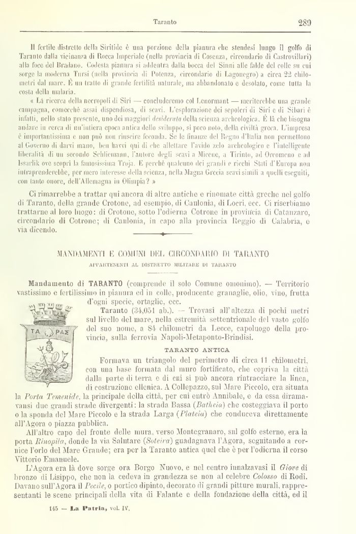 Ci rimarrebbe a trattar qui ancora di altre antiche e rinomate città greche nel golfo di Taranto, della grande Crotone, ad esempio, di Canlonia, di Locri ecc. Ci riserbiamo trattarne al loro luogo: di Crotone, sotto l'odierna Cotrone in provincia di Catanzaro, circondario di Cotrone; di Canlonia, in capo alla provincia Reggio di Calabria, e via dicendo. ____