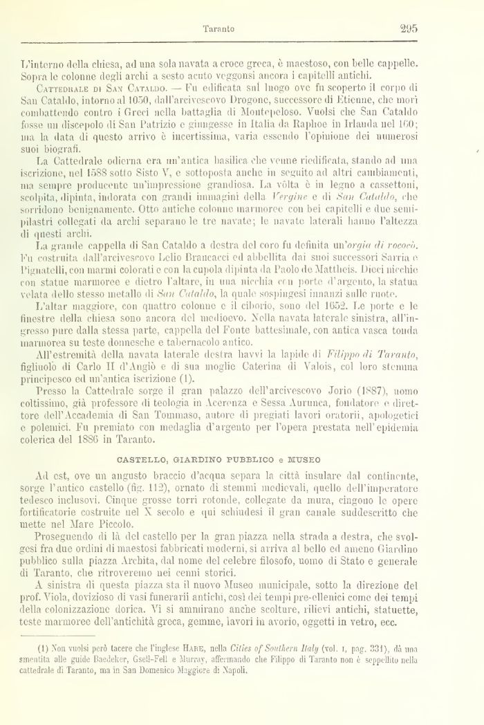 (1) Xnn vuoisi però tacere che l'inglese H.UìG, nella Cilies of Southern Itoli) (voi. i, pag. 331), dà una smentite alle guide Baedeker, Gseil-Fell e Murray, affermando che Filippo di Taranto non è seppellito nella cattedrale di Taranto, ma in San Domenico Maggiore di Napoli,