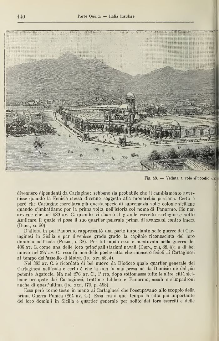 divennero dipendenti da Cartagine; sebbene sia probabile che il cambiamento avvenisse quando la Fenicia stessa divenne soggetta alla monarchia persiana. Cerio è però che Cartagine esercitava già questa specie di supremazia sulle colonie siciliane quando c'imbattiamo per la prima volta nell'istoria col nome di Panormo. Ciò non avviene che nel 430 av. G. quando vi sbarcò il grande esercito cartaginese sotto Amilcare, il quale vi pose il suo quartier generale prima di avanzarsi contro Iinera (Dioi)., xi, 20).