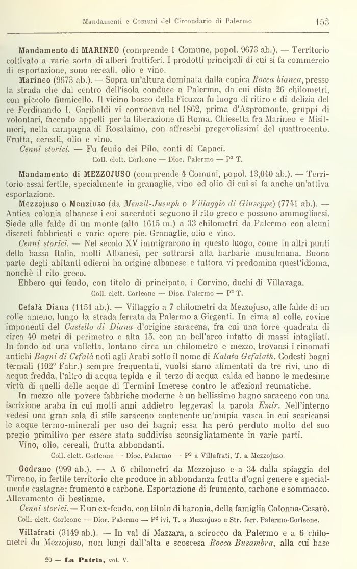 Coli, elett. Corleone — Dioc. Palermo — P ivi, T. a Mezzojuso e Str. ferr, Palermo-Corleone.