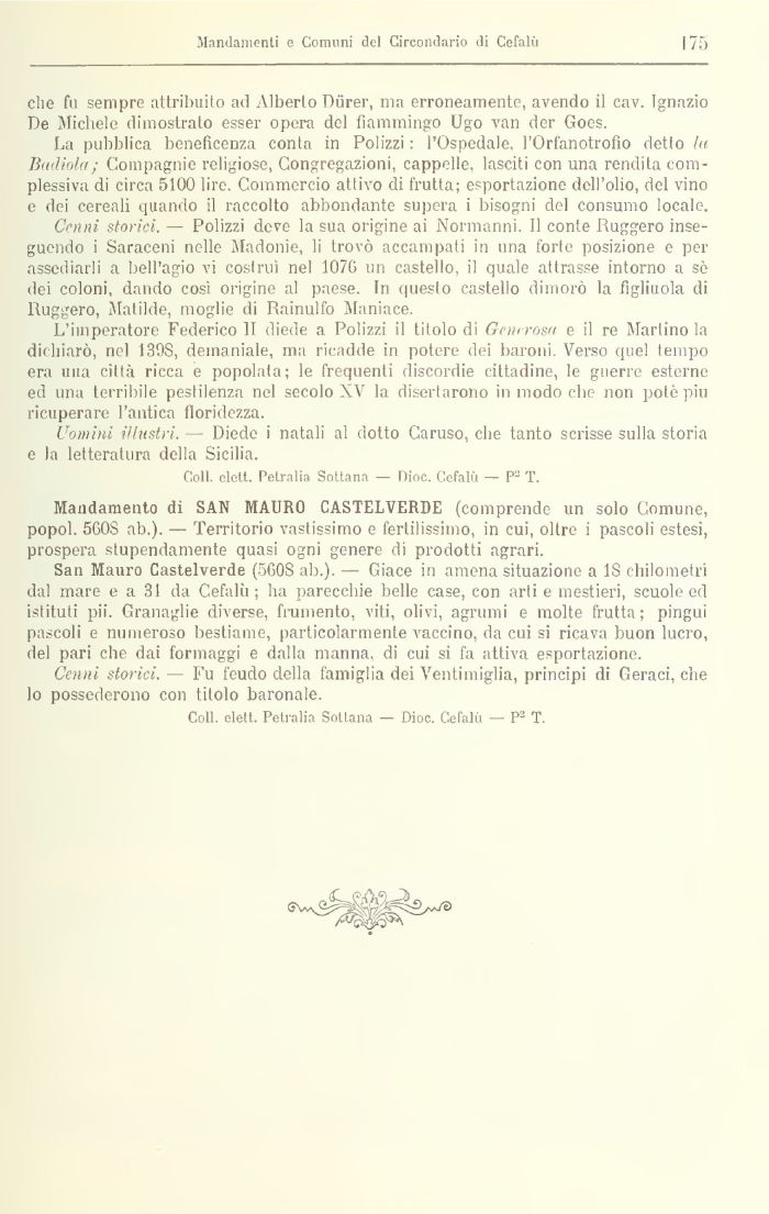 San Mauro Castelverde (5608 ab.). — Giace in amena situazione a 18 chilometri dal mare e a 31 da Cefalù; ha parecchie belle case, con arti e mestieri, scuole ed istituti pii. Granaglie diverse, frumento, viti, olivi, agrumi e molte frutta; pingui pascoli e numeroso bestiame, particolarmente vaccino, da cui si ricava buon lucro, del pari che dai formaggi e dalla manna, di cui si fa attiva esportazione.