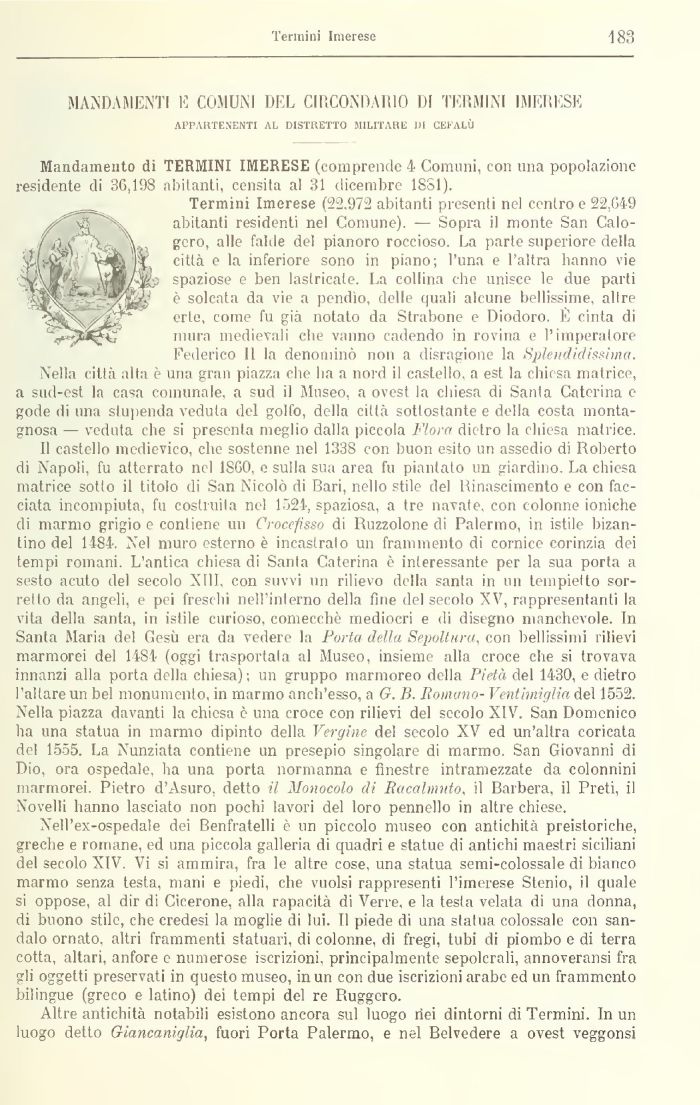 Mandamento dì TERMINI IMERESE (comprende 4 Comuni, con una popolazione residente di 36,108 abitanti, censita al 31 dicembre ISSI).