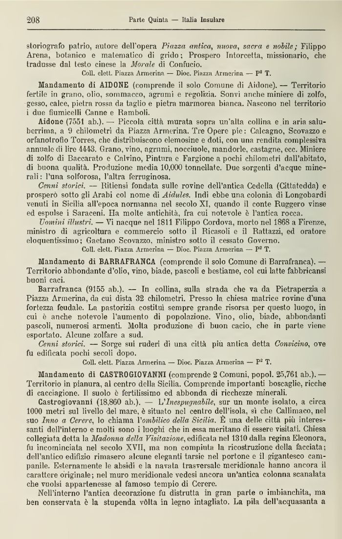Mandamento di CASTRO GIOVANNI (comprende 2 Comuni, popol. 25,761 ab.).— Territorio in pianura, al centro della Sicilia. Comprende importanti boscaglie, ricche di cacciagione. Il suolo ò fertilissimo ed abbonda di ricchezze minerali,