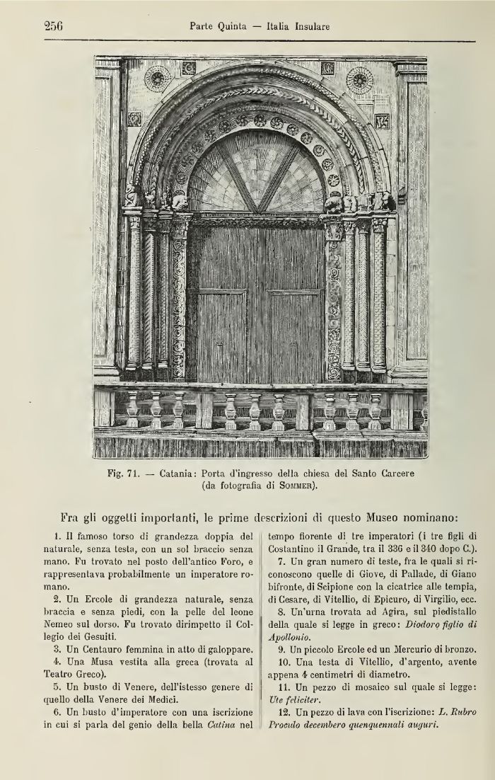 Catania: Porta d'ingresso della chiesa del Santo Carcere (da futografia di Sommer).
