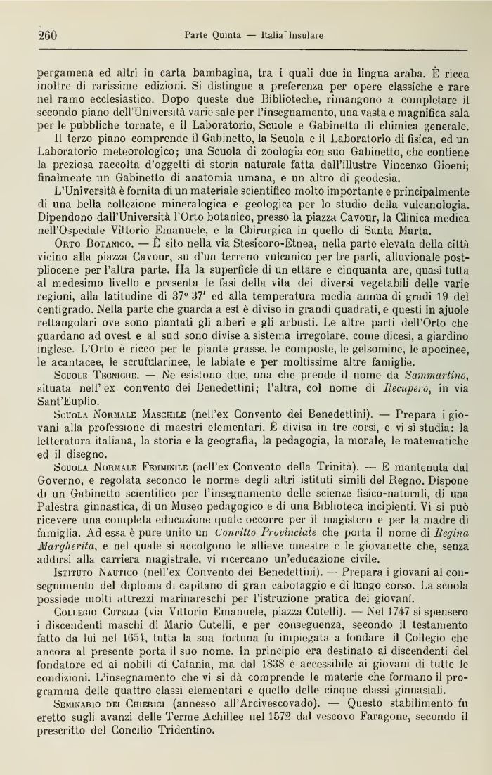 Scuole Tecniche. — Ne esistono due, una che prende il nome da Hummartino, situata nell'ex convento dei Benedettini; l'altra, col nome di Recupero, invia Sant'Euplio.