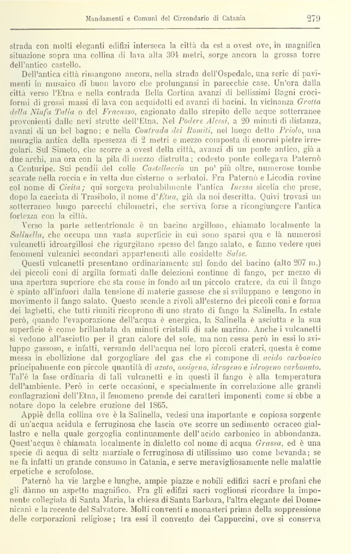 Verso la parte settentrionale è un bacino argilloso, chiamalo localmente la Salinella, che occupa una vasta superficie in cui sono sparsi qua e là numerosi vulcanetti idroargillosi che rigurgitano spesso del fango salato, e fanno vedere quei fenomeni vulcanici secondari appartenenti alle cosidette Salse.