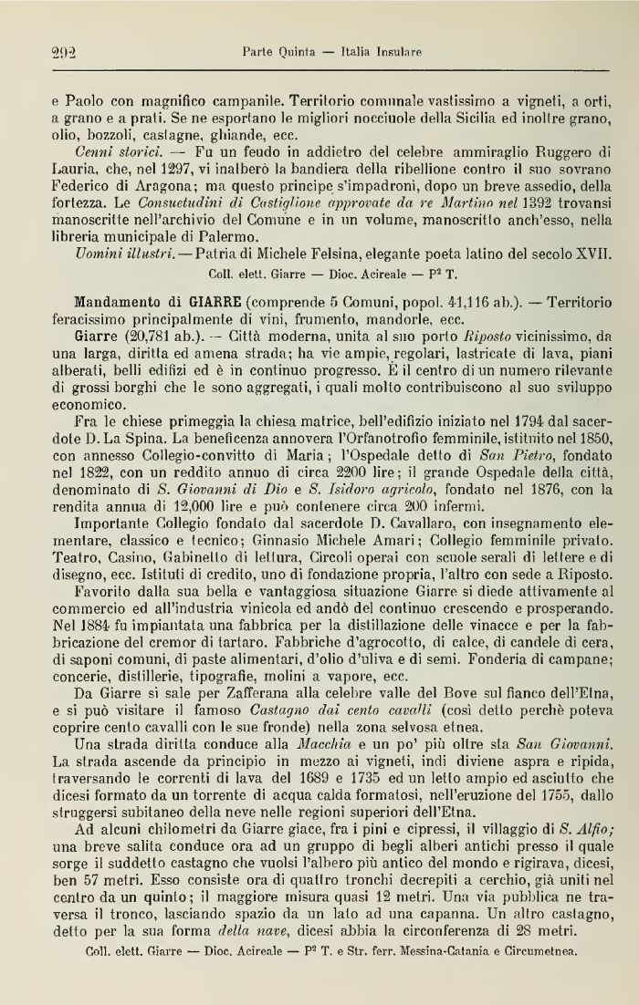 Coli, elett. Giarre — Dioc. Acireale — P3 T. e Str. ferr. Messina-Catania e Circumetnea.