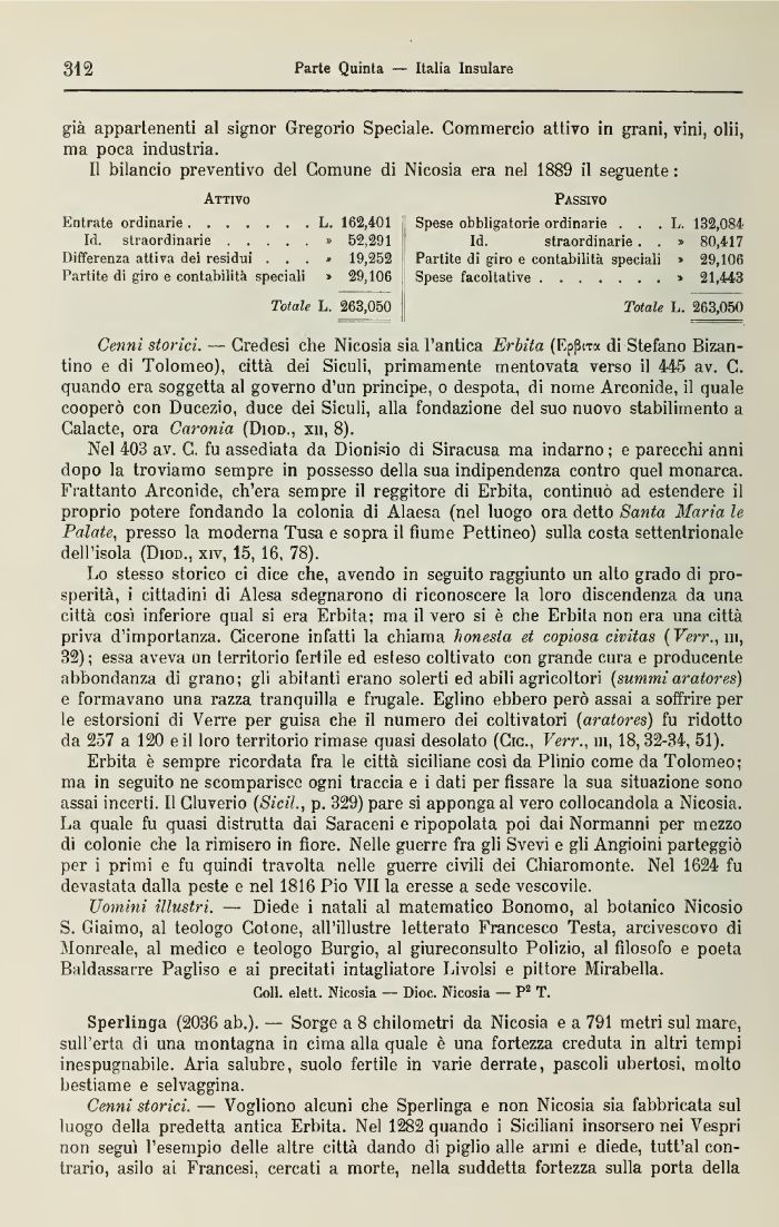11 bilancio preventivo del Comune di Nieosia era nel 1889 il seguente :