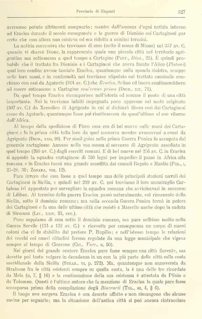 avremmo potuto altrimenti assegnarlo; mentre dall'assenza d'ogni notizia intorno ad Eraclea durante il secolo susseguente e le guerre di Dionisio coi Cartaginesi pai-certo che essa allora non esisteva od era ridotta a minimi termini.