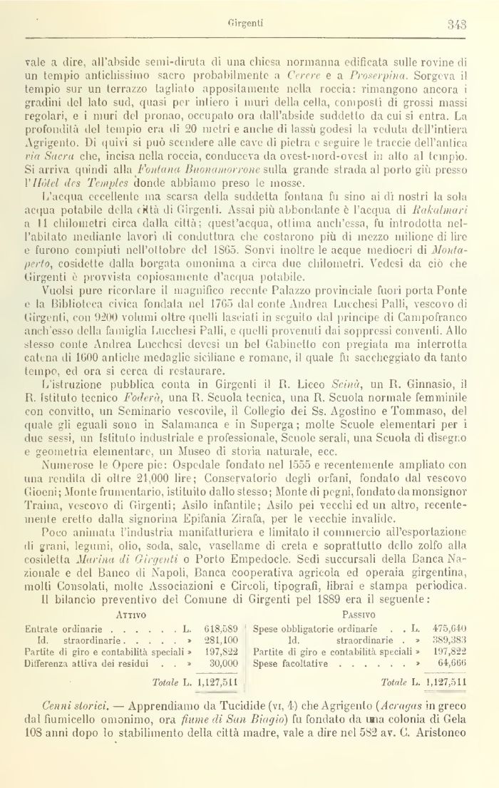 ti bilancio preventivo del Comune di Girgenti pel 1889 era il seguente: Attivo Passivo