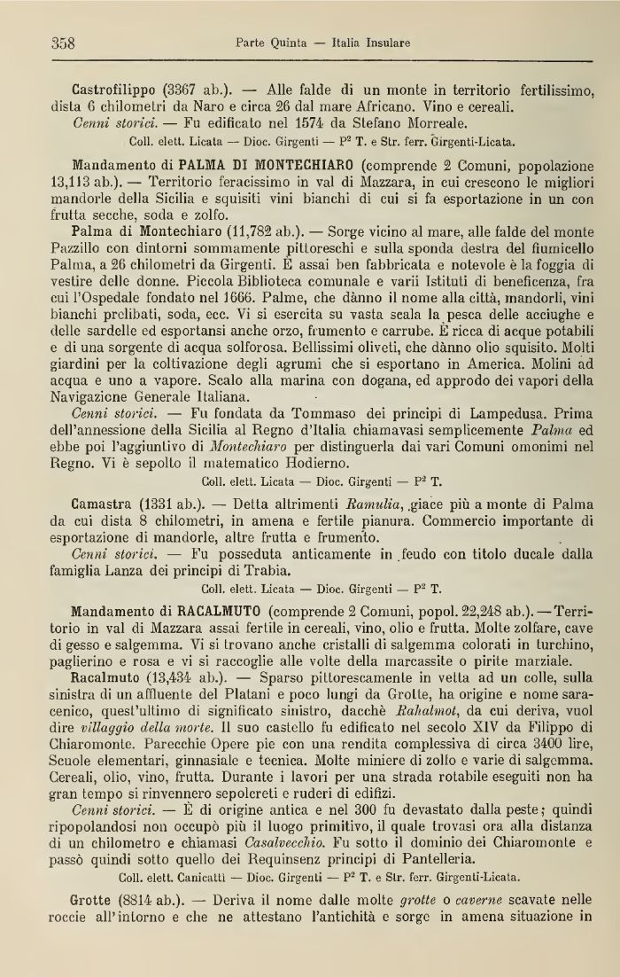 Coli, elett. Canicattì — Dioc. Girgenti — P2 T. e Str. ferr. Girgenti-Licata.
