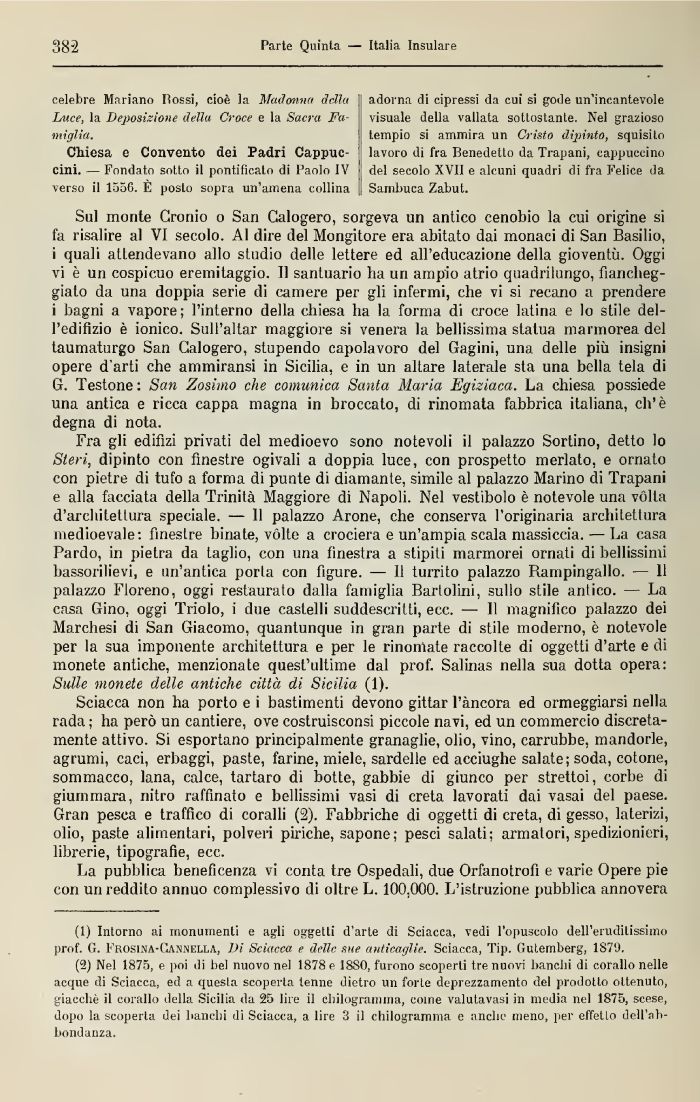 (1) Intorno ai monumenti e agli oggetti d'arte di Sciacca, vedi l'opuscolo dell'eruditissimo prof. G. Frosina-Oasnklla, Di Sciacca e delle sue anticaglie. Sciacca, Tip. Gutemberg, 1S7'J.