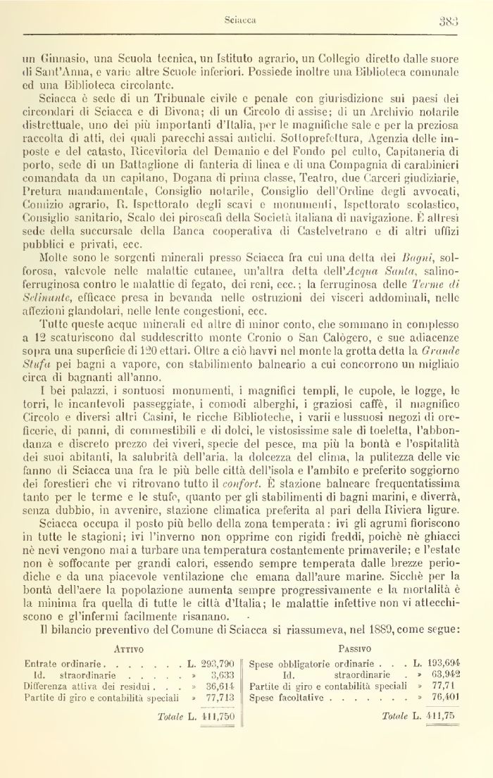 II bilancio preventivo del Comune di Sciacca si riassumeva, nel 1889, come segue: