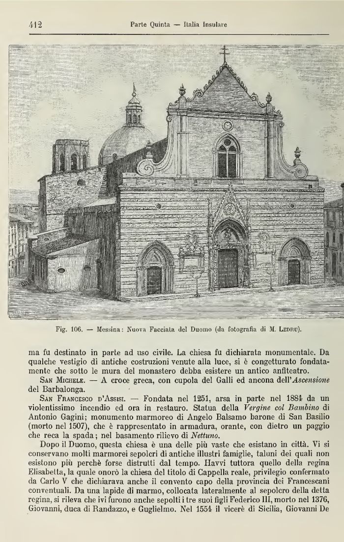 Fig. 106. — Messina : Nuova Facciata, del Duomo (da fotografìa di M. Ledru).