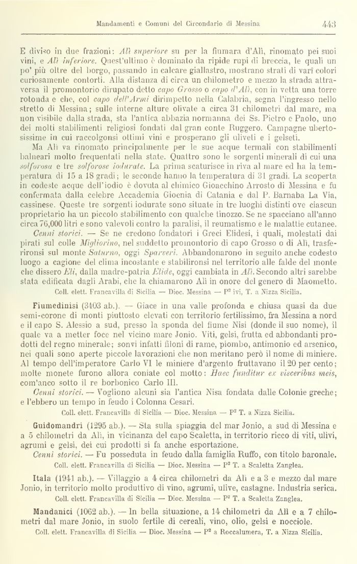 Mandamci (1062 ab.). — In bella situazione, a 14 chilometri da Ali e a 7 chilometri dal mare Jonio, in suolo fertile di cereali, vino, olio, gelsi e nocciole.