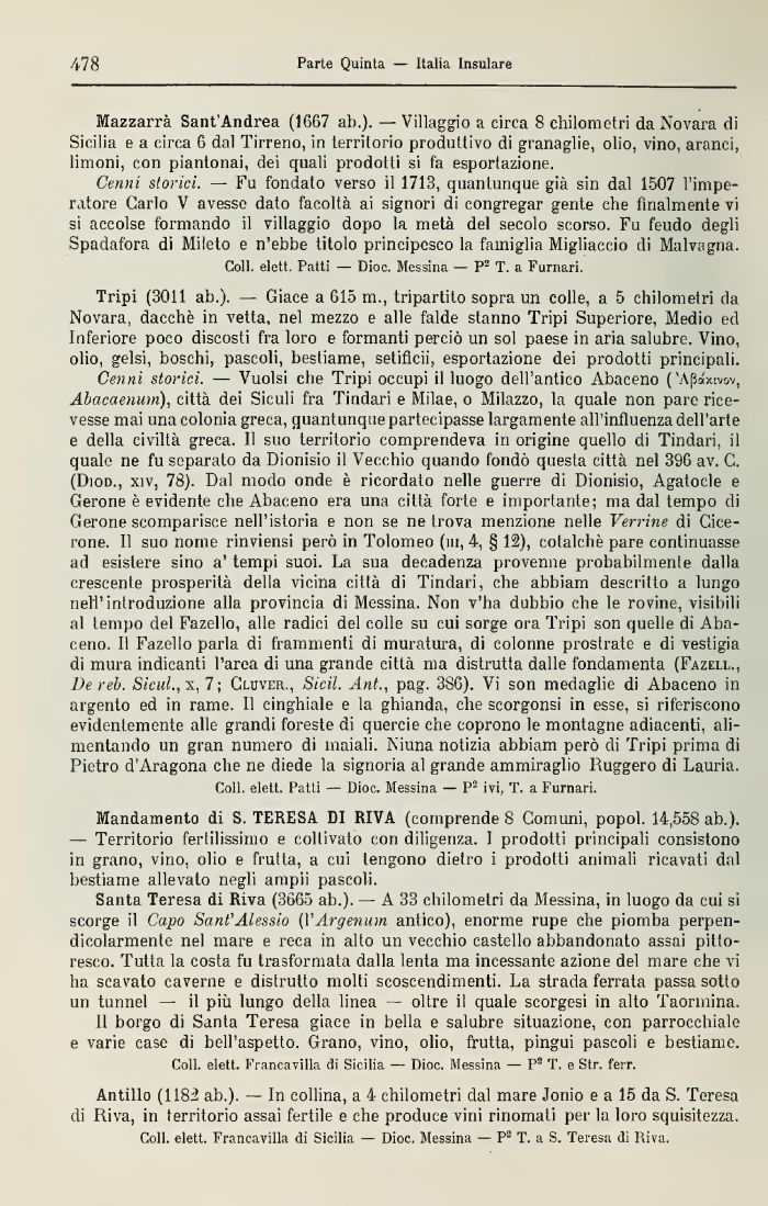 Coli, elett. Tatti — Dioc. Messina — P T. a Furnari.