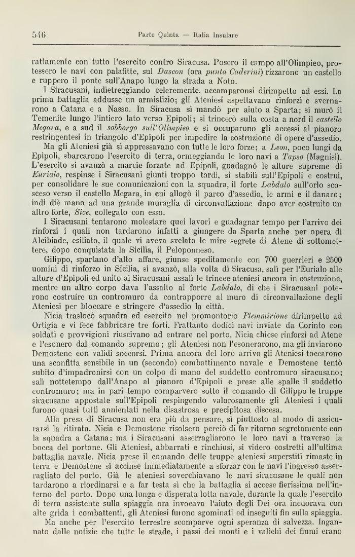 rattamente con tutto l'esercito contro Siracusa. Posero il campo all'Olimpieo, protessero le navi con palafitte, sul Dascon (ora punta Cadérmi) rizzarono un castello e ruppero il ponte sull'Anapo lungo la strada a Noto.