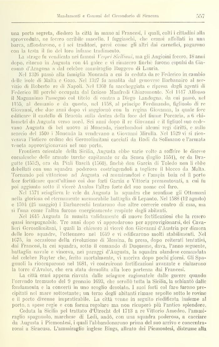 La strage fu vendicata nei famosi Vespri ìSìeìtìmni, ma gli Angioini fecero, 18 anni dopo, ritorno in Augusta con 44 galee e vi rimasero fincliò furono espulsi da Giacomo d'Aragona a dal celebre ammiraglio Ruggero di Laurk,