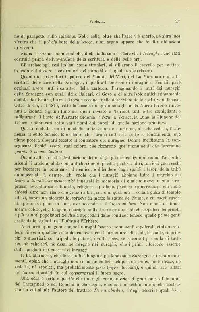 Una cosa è certa e quest'è che i nuraghi sono anteriori di gran lunga al dominio dei Cartaginesi o dei Romani in Sardegna, e sono manifestamente quelle costruzioni a cui allude l'autore del trattato De mirabilihus, eli' egli descrive quali SóXot,