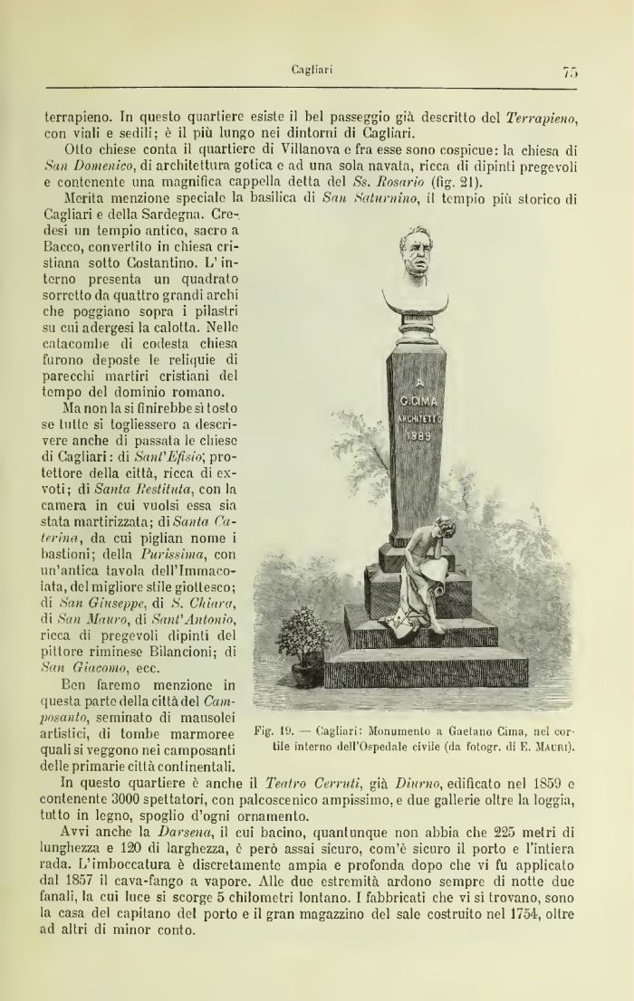 artistici, di tombe marmoree FiS- ,(J- — Cagliari: Monumento a Gaetano Cima, nel cor-quali sì veggono nei camposanti ll'e ln'erno dell'Orpellale civile (da fotogr. di E. Macri). delle primarie città continentali.