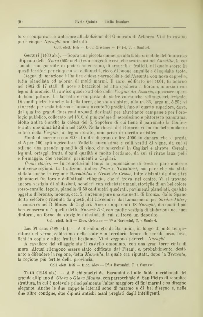 Tulli (1242 ab.). — A 5 chilometri da Barimi ini ed alle falde meridionali del grande altipiano di Giara o Giara Manna, con parrocchiale di San Pietro di semplice struttura, in cui è notevole principalmente l'aitar maggiore di fini marmi e su disegno elegante. Anche le due cappelle laterali sono di marmo e di bel disegno e, nelle due altre contigue, due dipinti antichi assai pregiati dagli intelligenti.