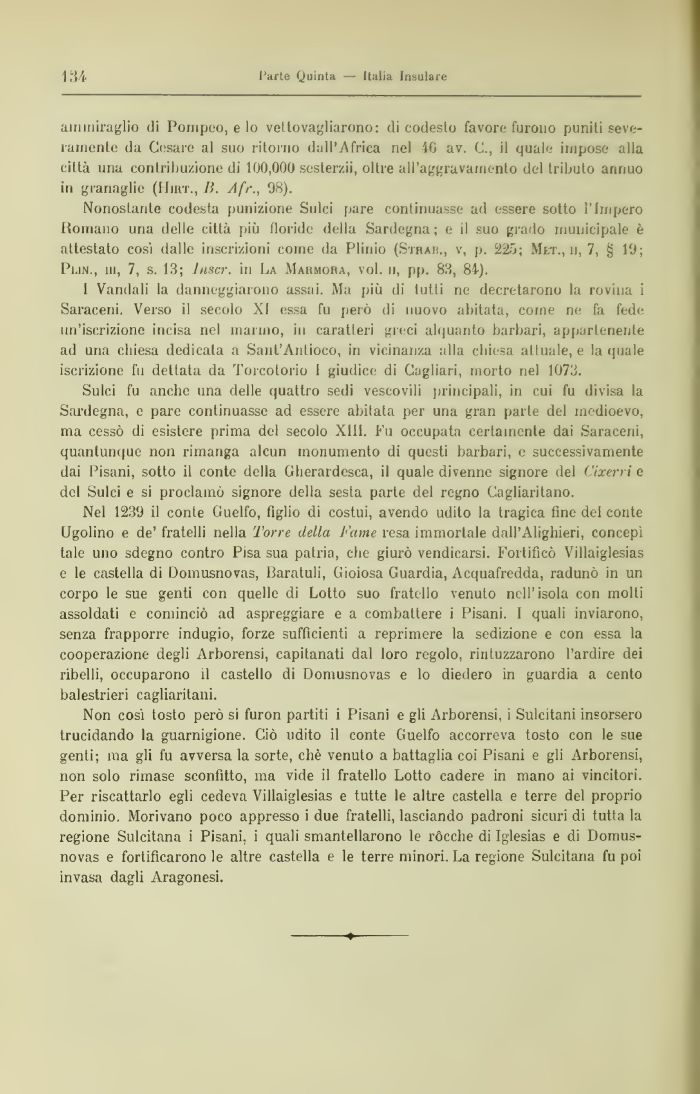 Non così tosto però si furon partiti i Pisani e gli Arborensi, i Sulcìtani insorsero trucidando la guarnigione. Ciò udito il conte Guelfo accorreva tosto con le sue genti; ma gli fu avversa la sorte, cliè venuto a battaglia coi Pisani e gli Arborensi, non solo rimase sconfitto, ma vide il fratello Lotto cadere in mano ai vincitori. Per riscattarlo egli cedeva Villaiglesias e tutte le altre castella e terre del proprio dominio. Morivano poco appresso i due fratelli, lasciando padroni sicuri di tutta la regione Sul citami i Pisani, i quali smantellarono le ròcche di Iglesias e di Domusnovas e fortificarono le altre castella e le terre minori. La regione Sulcitana fu poi invasa dagli Aragonesi.